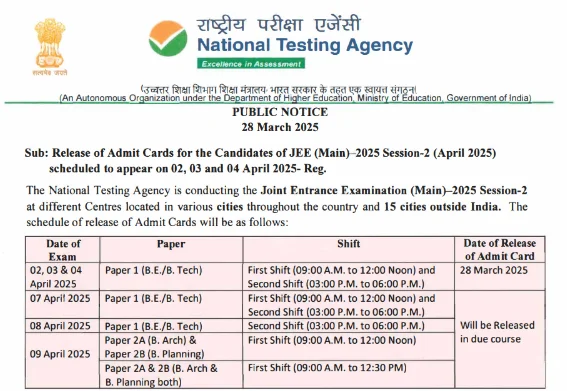 Further NTA will conduct JEE Mains exam on 3rd April 4th April 7th April 8th April and 9th April 2025. The JEE Main admit card for these dates has been released on the official website. Further, exam analysis and difficulty level will be updated soon.