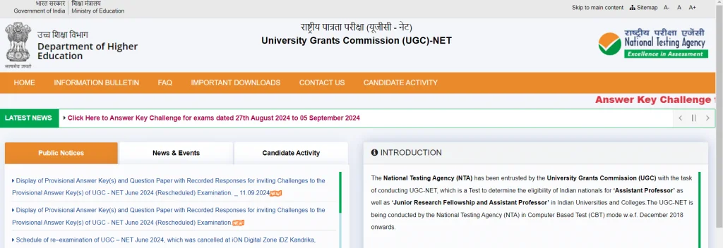 Step 1: Visit the Official Website: Go to the official website of UGC NET 2024.